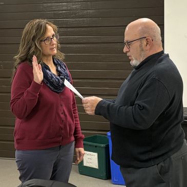 Newly elected Council Member John Zasik is sworn in by Solicitor McAndrew at her Law Office on January 7, 2026.